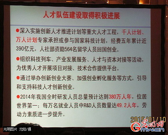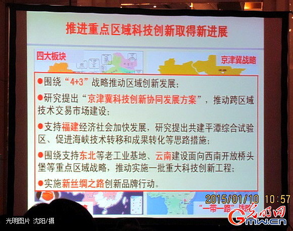光明网北京1月10日电(记者 沈阳)为期两天的“2015年全国科技工作会议”10日在北京会议中心举行,全国政协副主席、科技部部长万钢做题为《主动适应新常态 加快实施创新驱动 推动科技改革再上新台阶》的工作报告。