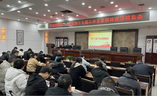 1月18日,市科技局组织召开学习贯彻党的十九届六中全会精神宣讲报告会,全局干部职工参加会议。