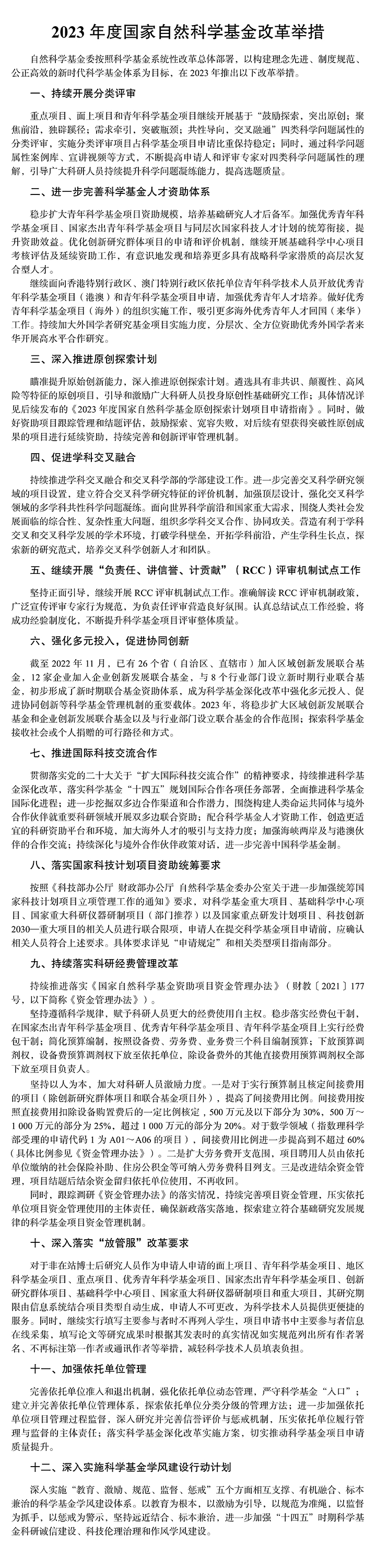 近日,国家自然科学基金委员会依据《国家自然科学基金条例》和相关管理规章,发布《2023年度国家自然科学基金项目指南(上下册)》。 自科科学基金委按照科学基金系统性改革总体部署,以构建理念先进、制度规范、公正高效的新时代科学基金体系为目标,在2023年推出12项改革举措。