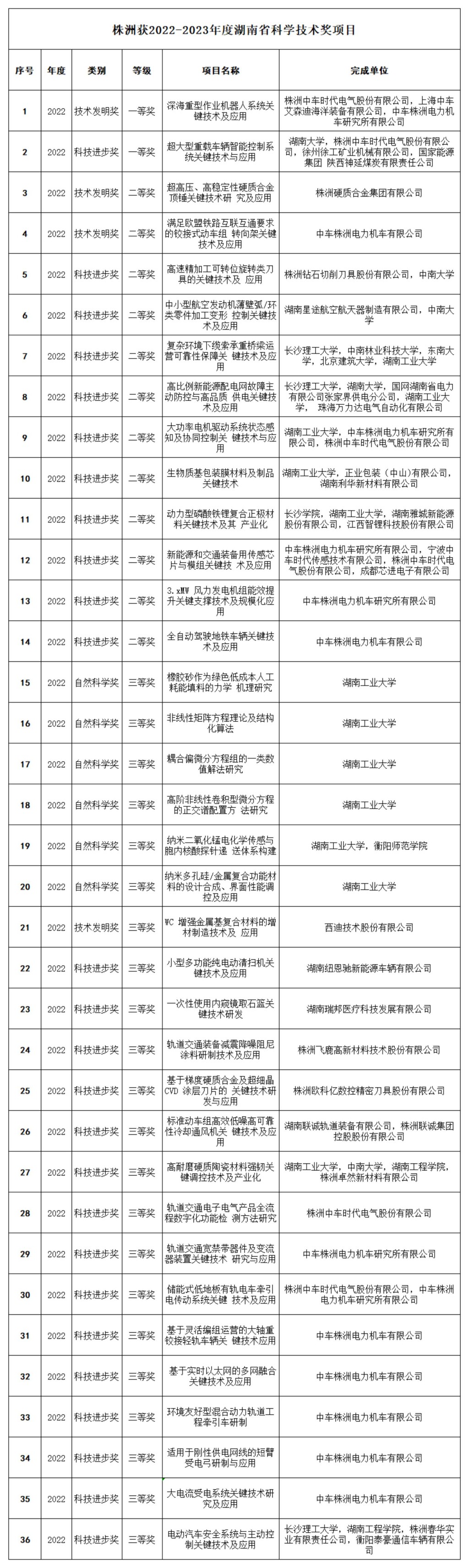 株洲36个项目获2022-2023年度湖南省科学技术奖