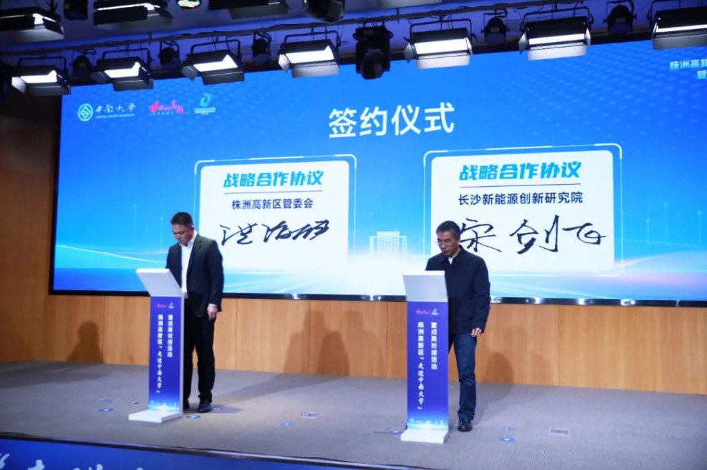 株洲高新区管委会与长沙新能源创新研究院签署战略合作协议。记者/杨如 摄