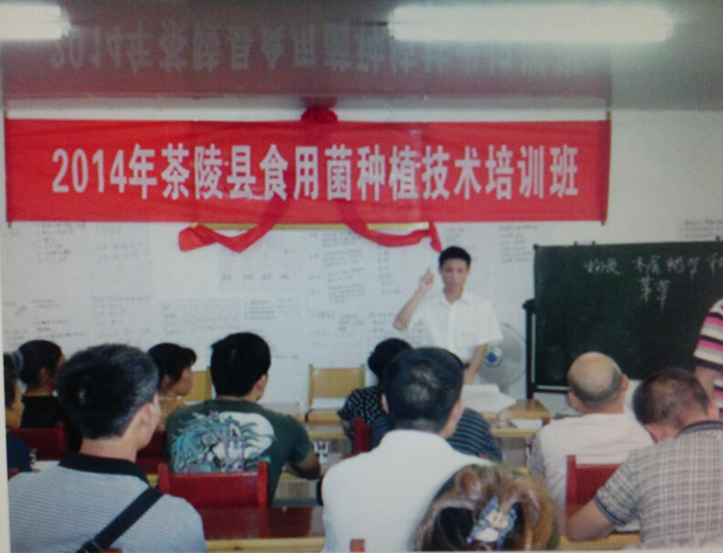 “三区”服务科技人员吴正坤副研究员为驻点单位开展食用菌种植技术培训