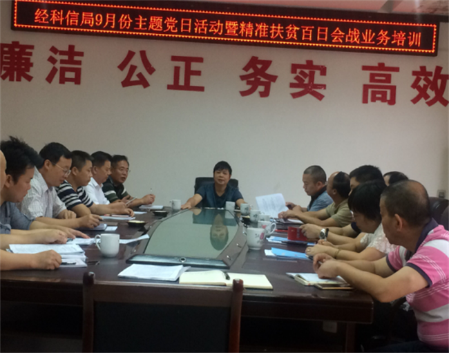为切实做好精准扶贫工作,确保打赢精准扶贫攻坚战,9月5日,醴陵市经科局召开扶贫攻坚“百日会战”工作业务培训会,全体机关干部参加会议。
