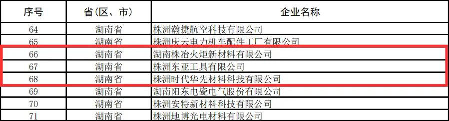 日前,国家工业和信息化部开展了第五批专精特新“小巨人”企业培育和第二批专精特新“小巨人”企业复核工作已完成相关审核其中渌口区湖南株冶火炬新材料有限公司株洲东亚工具有限公司、株洲时代华先材料科技有限公司3家公司榜上有名获评为第五批国家级专精特新“小巨人”企业。