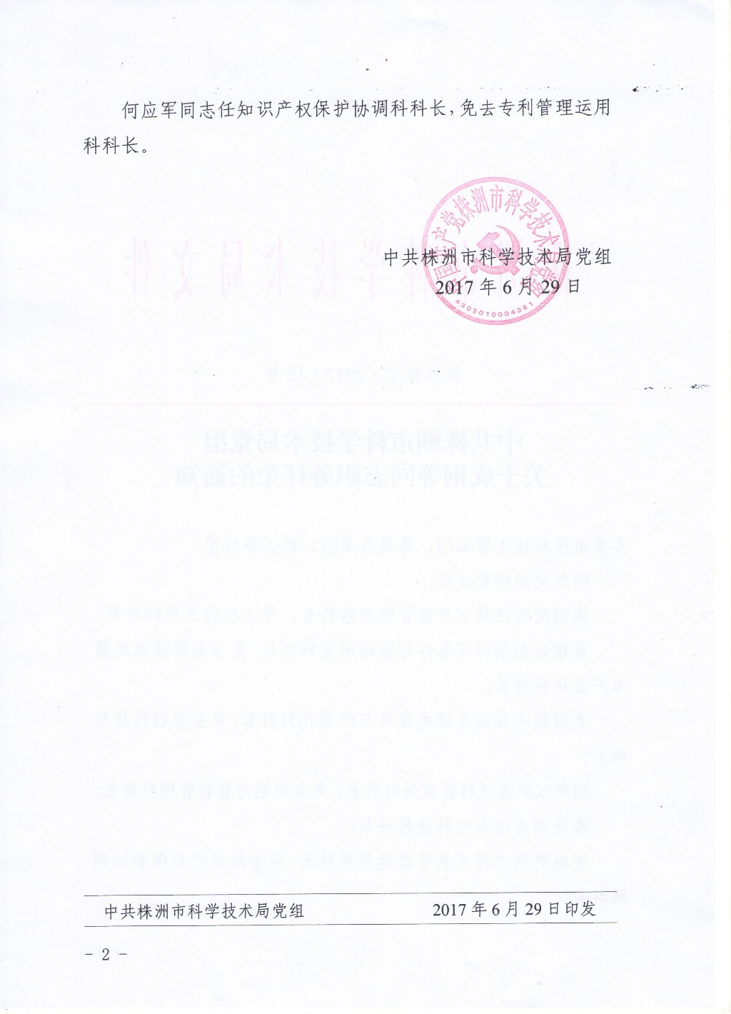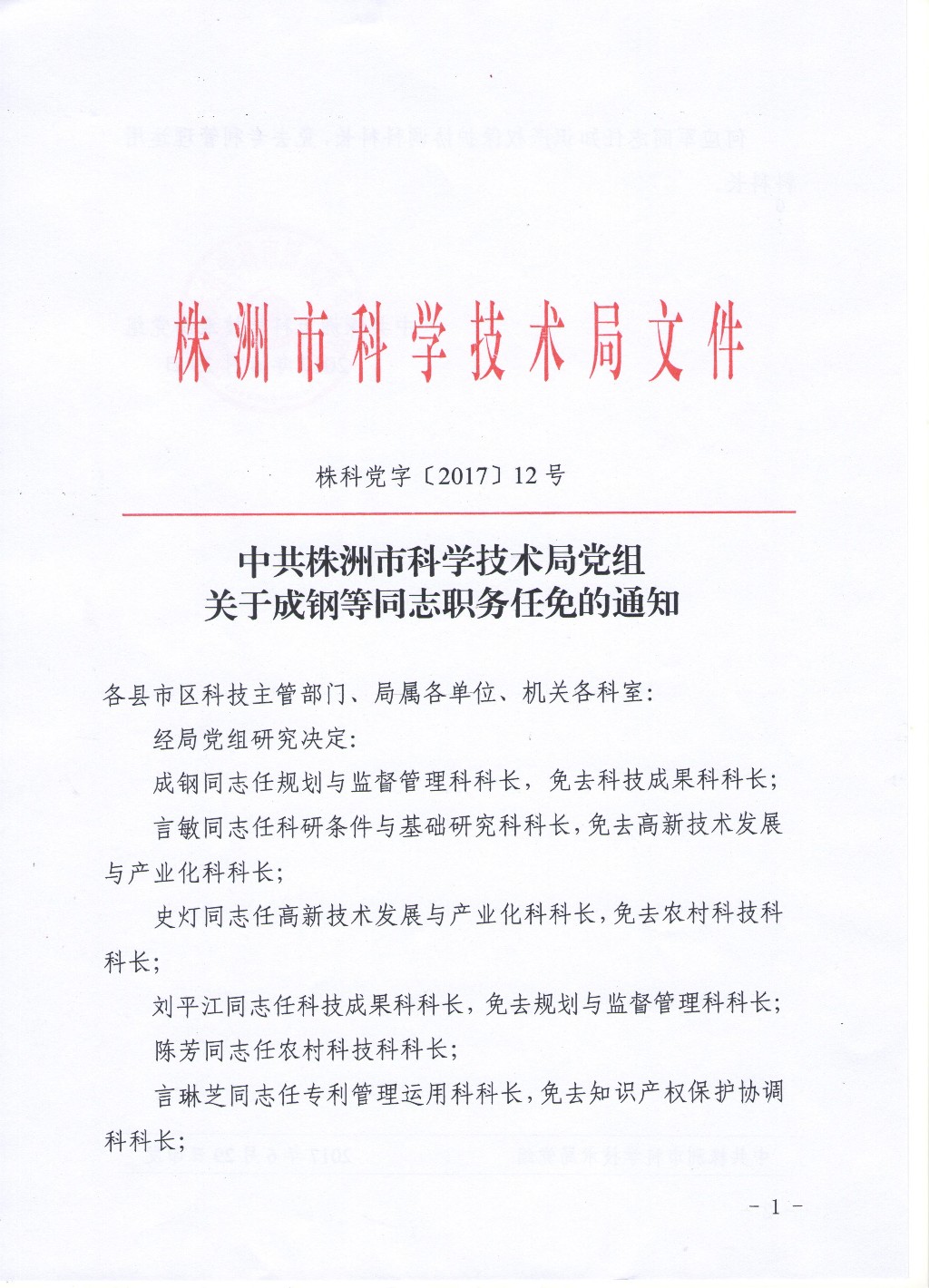 中共株洲市科学技术局党组关于成钢等同志职务任免的通知