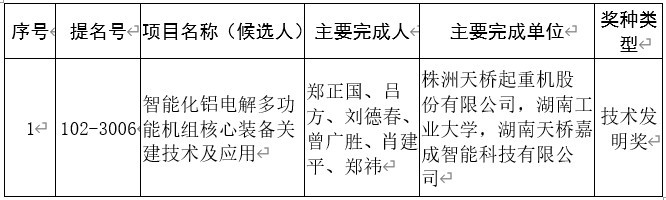 根据湖南省科学技术厅《关于2020年度湖南省科学技术奖推荐工作的通知》中关于“提名的项目应在本地区、本部门范围内进行公示,并责成项目主要完成人所在单位进行相应公示”的要求,现对株洲市2020年度拟提名项目“智能化铝电解多功能机组核心装备关建技术及应用”进行公示,自即日起5个工作日内,如对公示项目存有异议,请在公示期内书面向市科技局反映,并提供必要的证明材料。凡匿名异议和超出期限的异议一般不予受理。