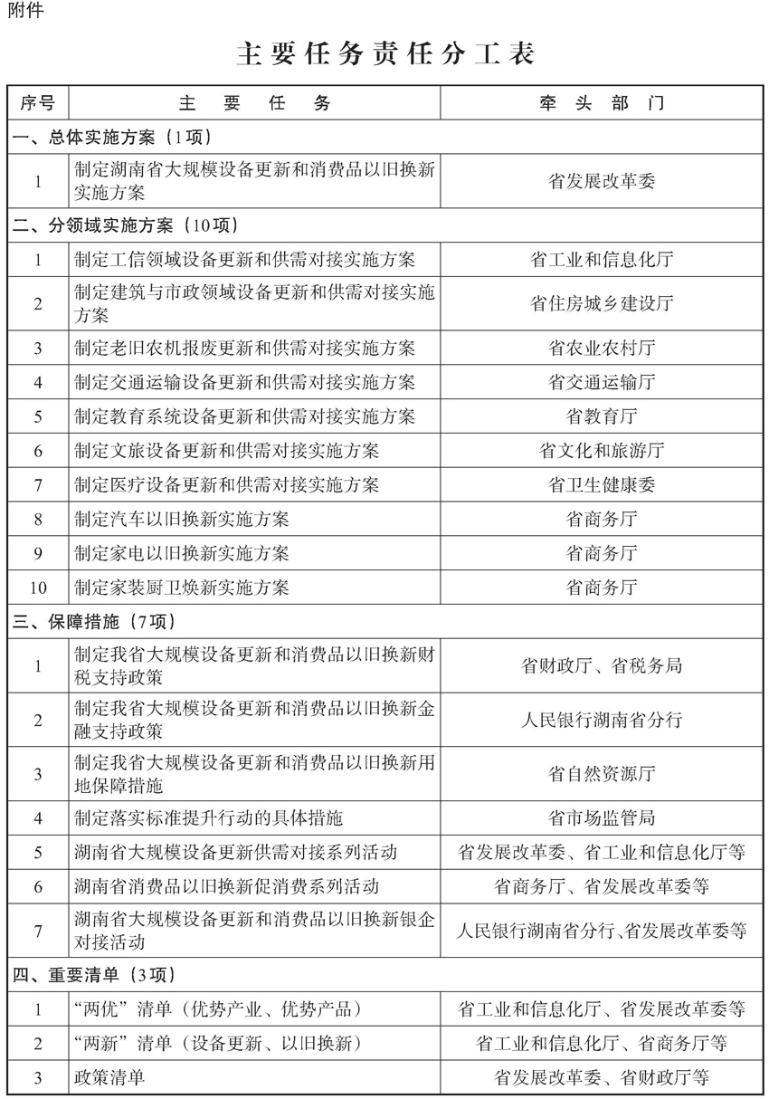 湖南省人民政府关于印发《湖南省推动大规模设备更新和消费品以旧换新实施方案》的通知